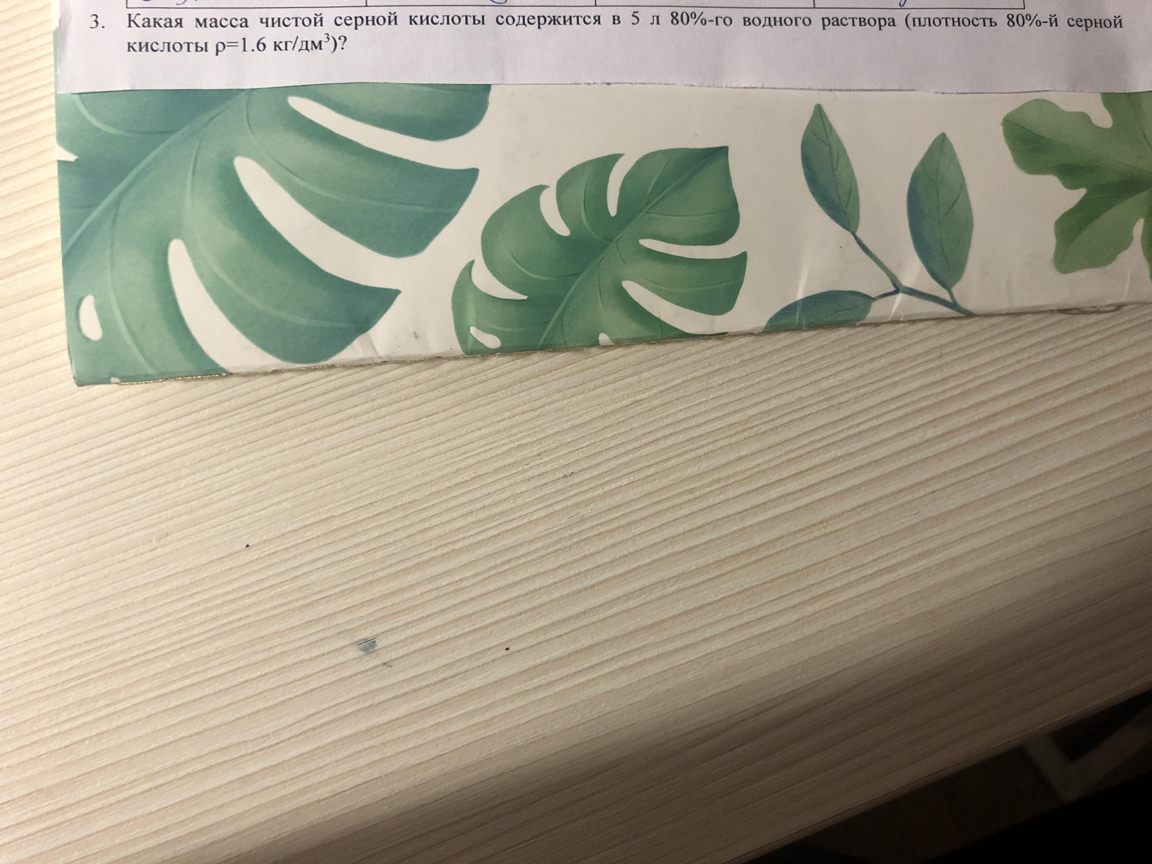 Какая масса чистой серной кислоты содержится в 5л 80%-го водного раствора( плотность 80%-ой серной кислоты ρ= 1,6кг/дм^3)