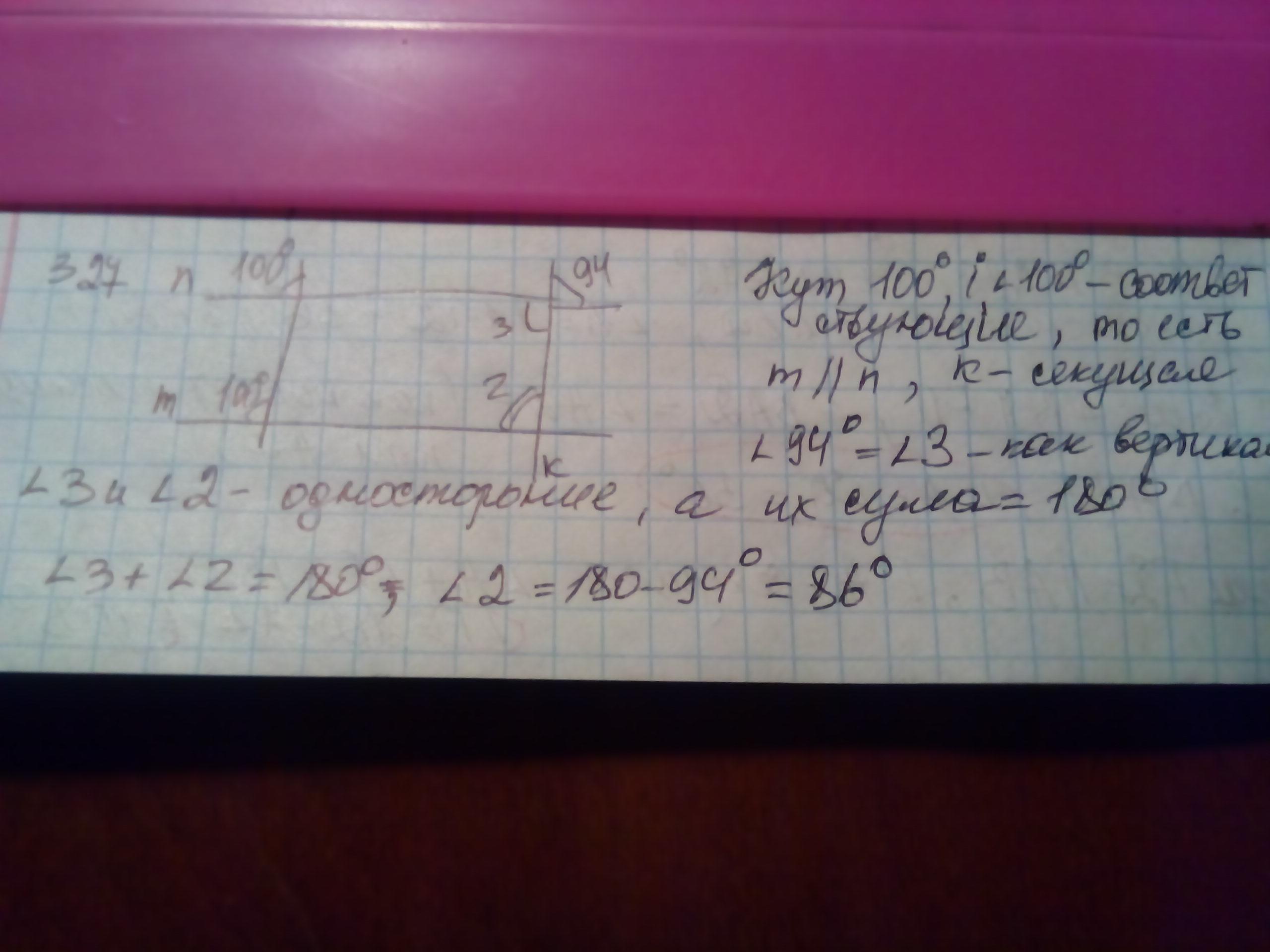 327. m i n паралельні, а це означає що якщо кут зверху має 94°, то і нижній також має 94°