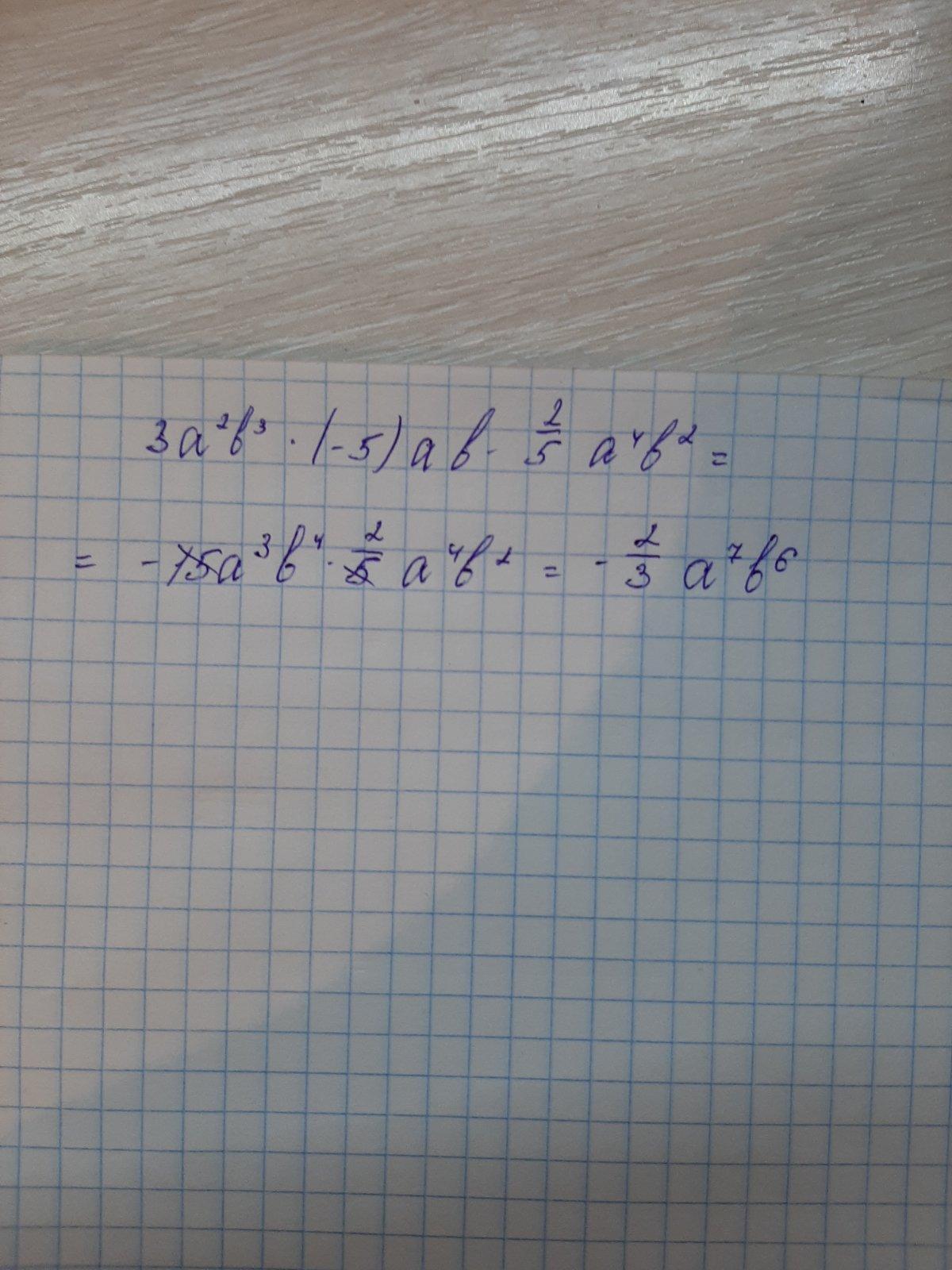 3a^3b^3×(-5)ab×2/5 a^4b^2=-15a^3b^4×2/5a^4b^2=-6a^7b^6