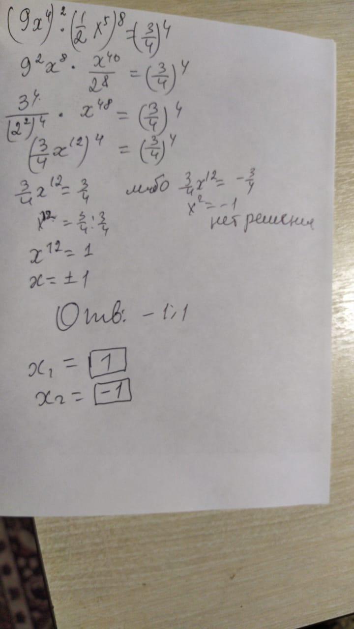 (9x⁴)² * ⁽1/2x⁵)⁸ = (3/4)⁴