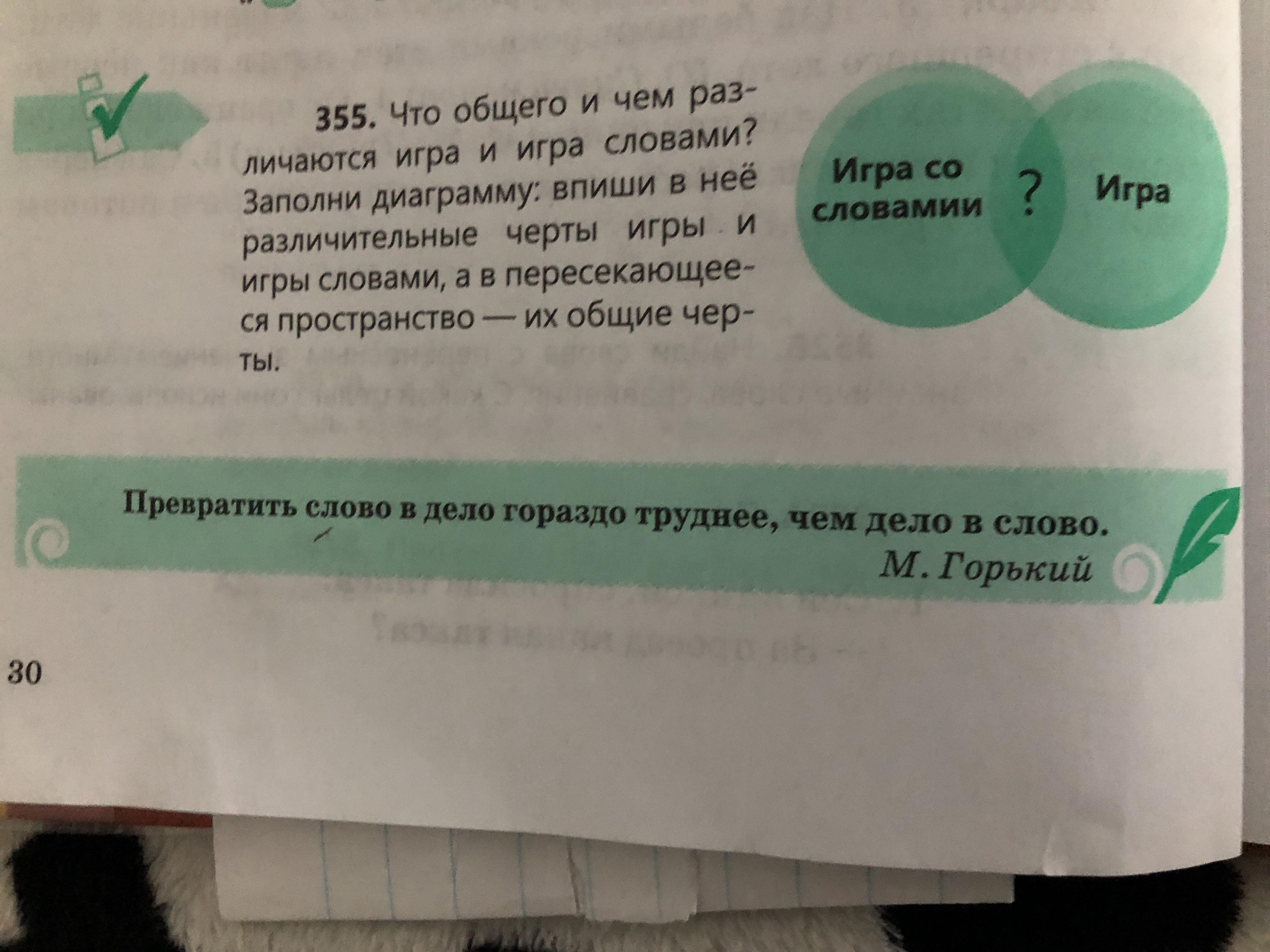 Что общего и чем различаются игра и игра словами? Заполни диаграмму впиши в неё разливательные черты игры и игры словами, а в пересекающееся пространство — их общие черты