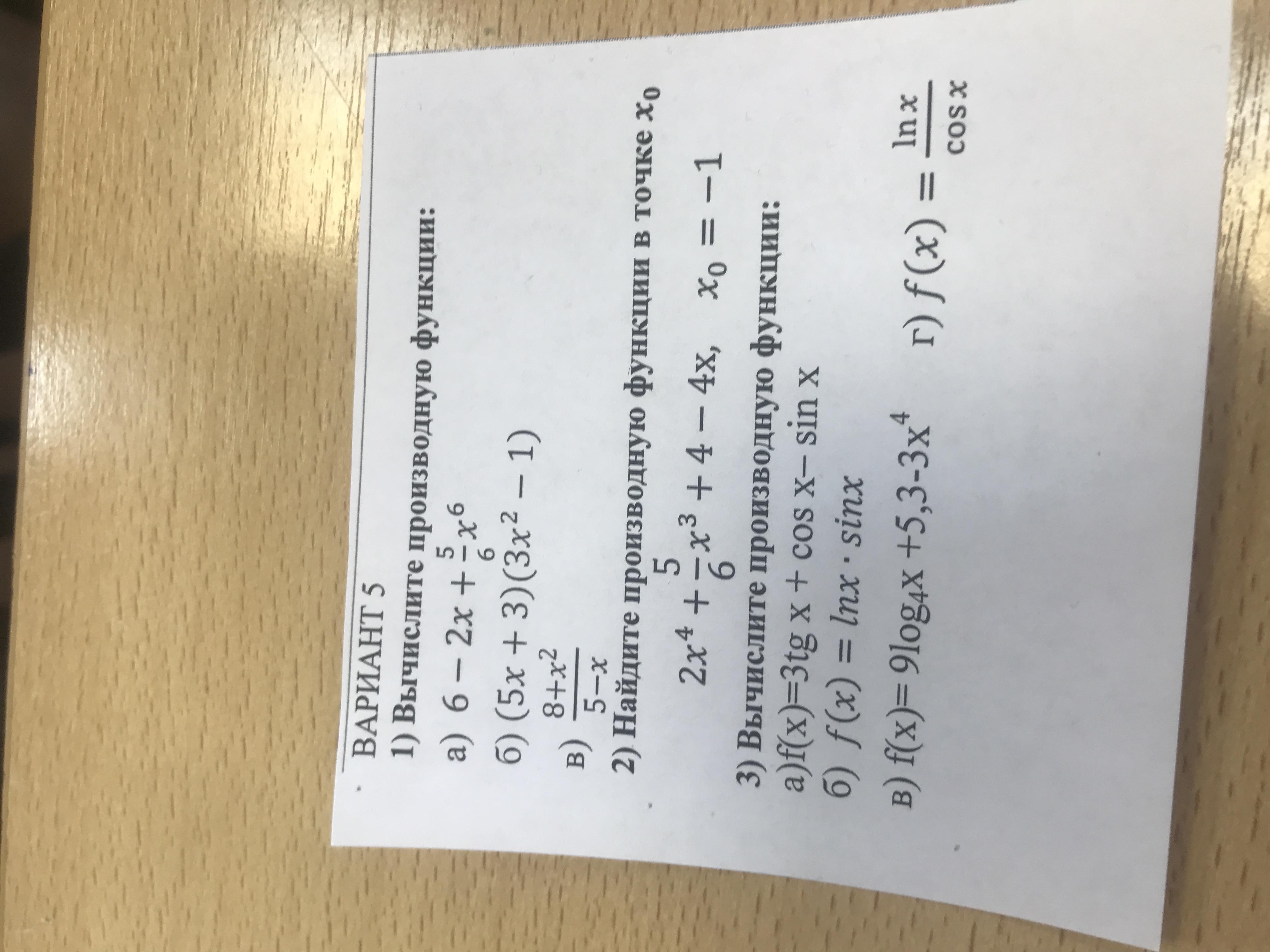 в) f'(x)= (9/2 log(2) х + 53/10 - 3х⁴)' = 9/2ln(2)x - 12x³