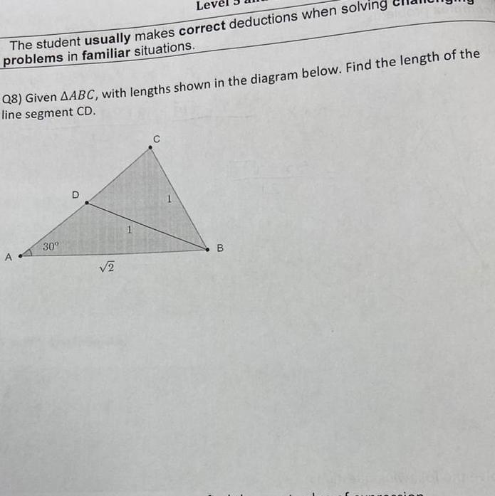 Дано: ΔАВС , АВ=√2 , BD=1 , ВС=1 , ∠А=30° . Найти: CD .