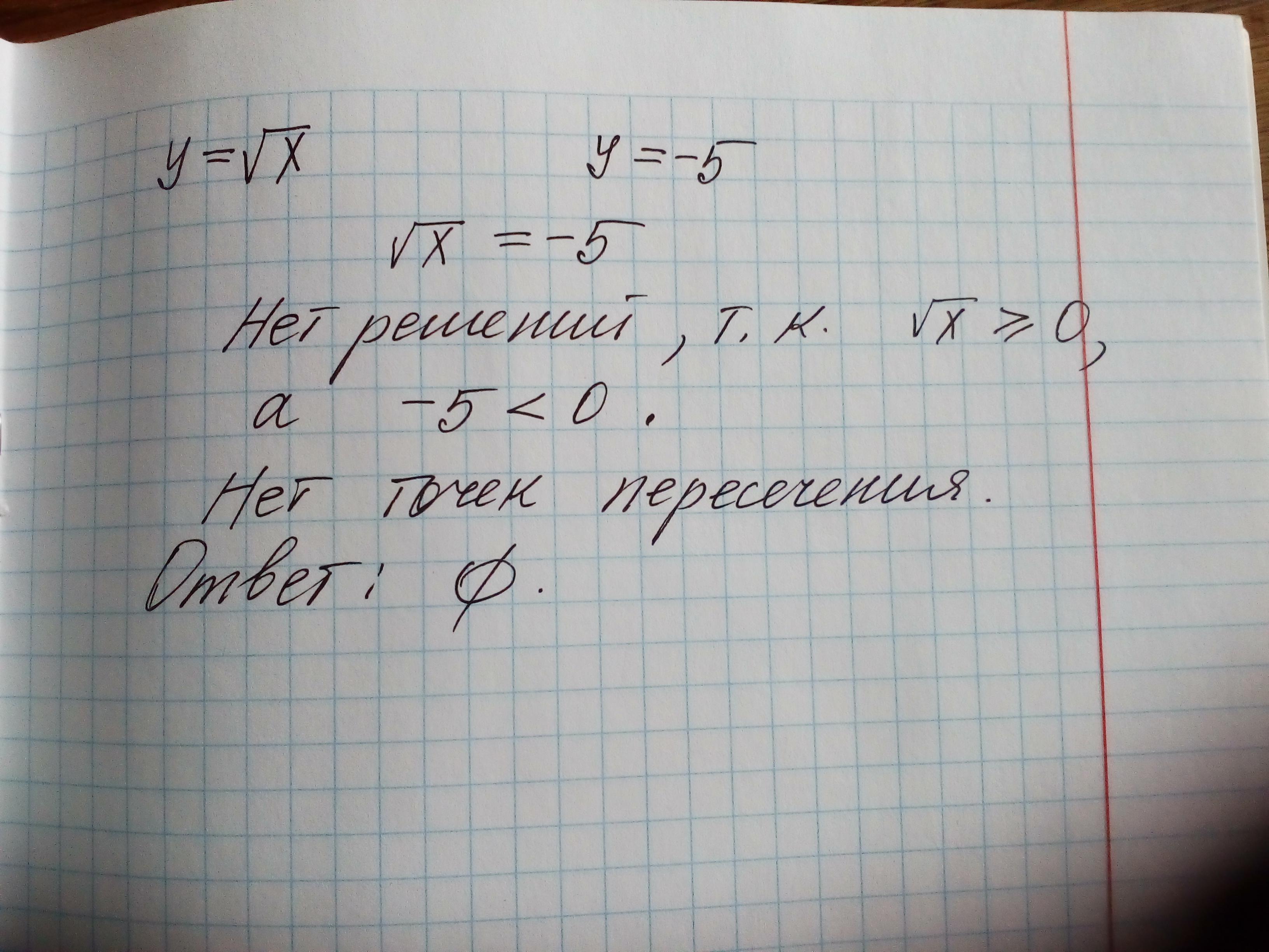 Не делая построения найдите координаты точки пересечения графика функции у= корень х и прямой у=-5