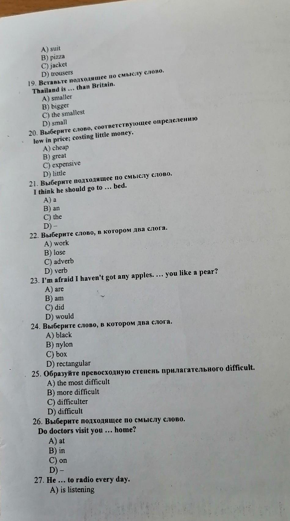 18 pizza 19 bigger 20 cheap 24 nylon more difficult at listens