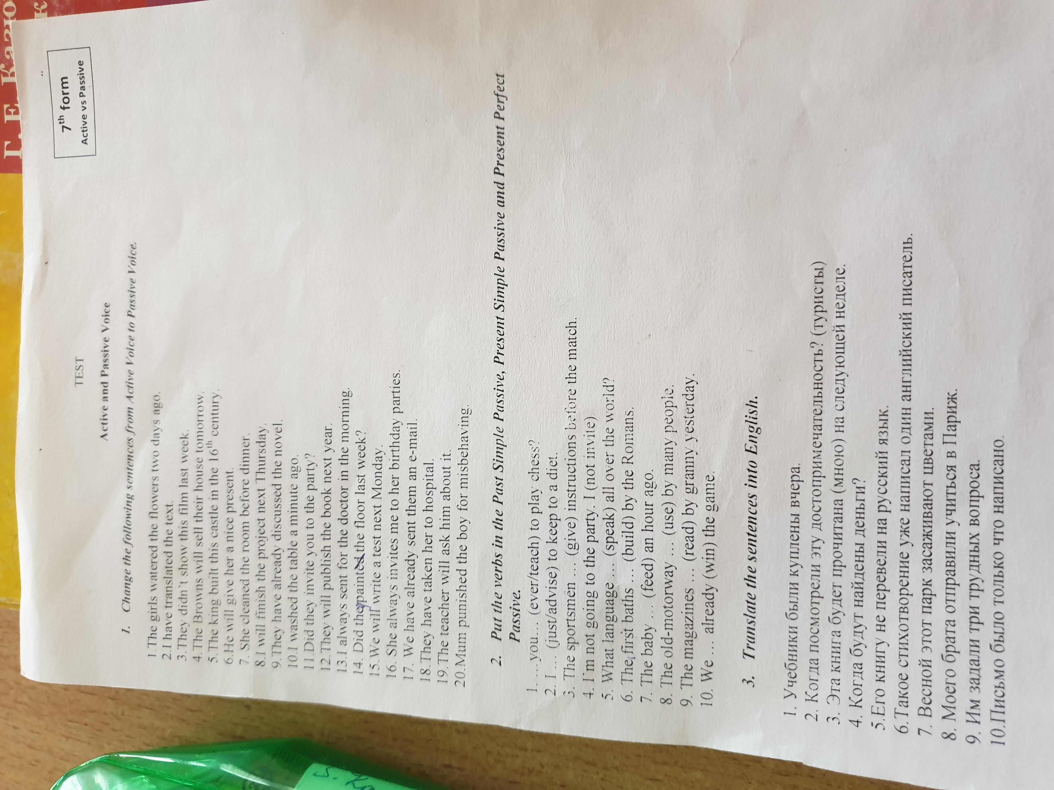 9.the magazines were read by granny yesterday