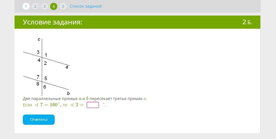 ∠2 = ∠7 (как накрест лежащие) = 160°