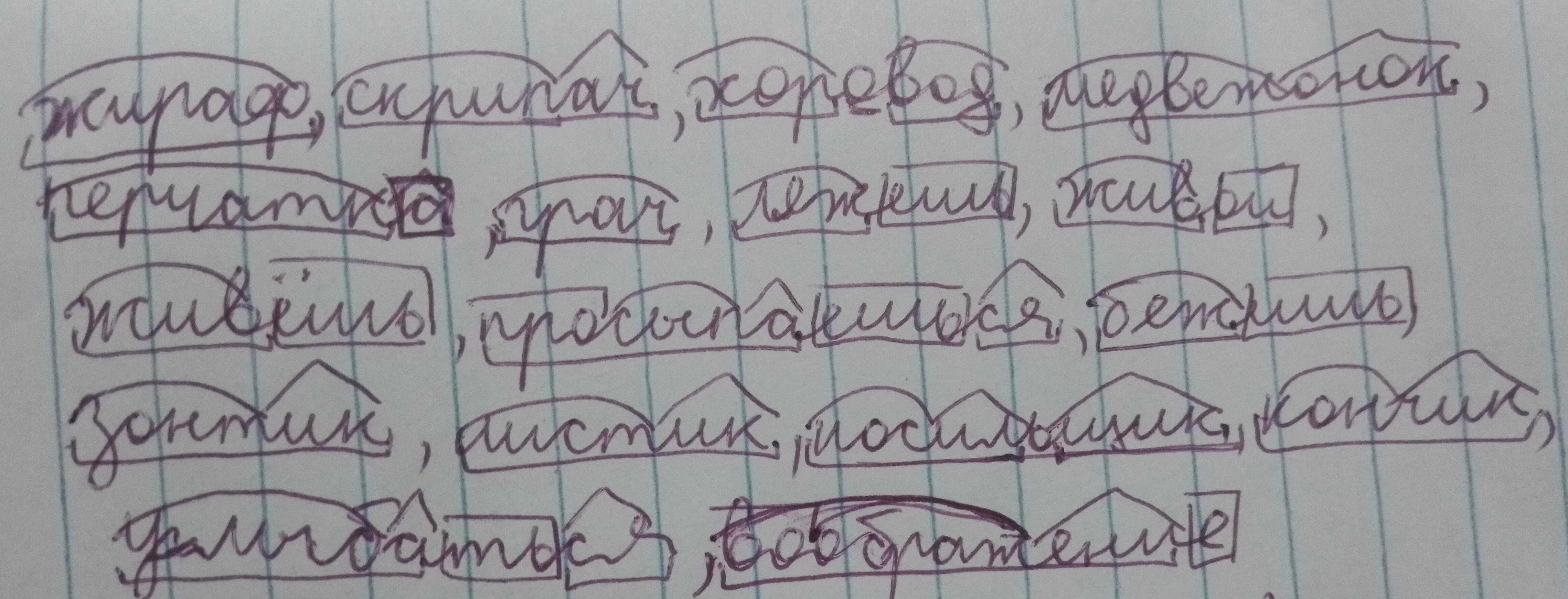 Жираф,скрипач,хоровод,медвежонок,перчатка,грач,ляжешь,живой,живёшь,просыпаешься,бежишь,зонтик,листик,носильщик,кончик,улыбаться,воображение