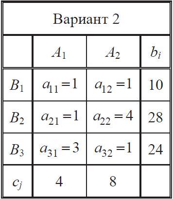 Предприятие выпускает два вида продукции A₁ и A₂, используя при этом три вида сырья B₁, B₂ и B₃. Известны запасы сырья равные b₁, b₂ и b₃ соответственно. Расход сырья вида Bi на производство единицы продукции Aj равен ai,j. Доход от реализации единицы продукции Aj составляет cj условных единиц. Требуется составить такой план производства продукции, при котором доход будет максимальным.