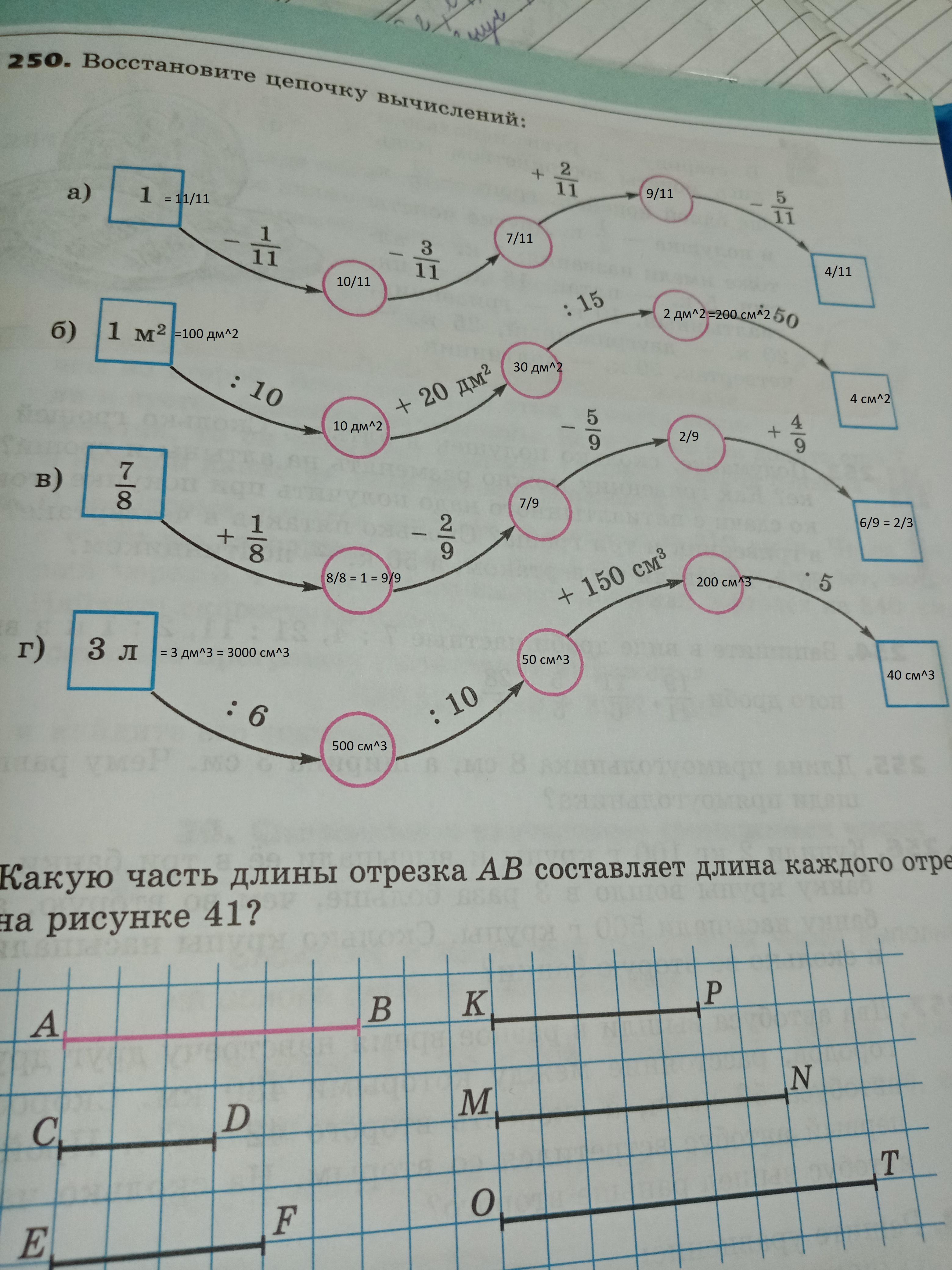 KP = 5 клеток => KP/AB = 5/6 => KP составляет 5/6 от АВ
