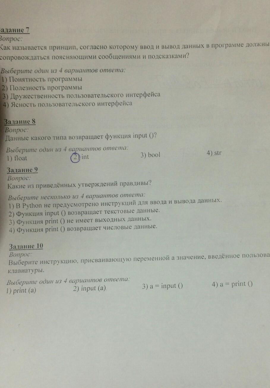 В девятом задании может быть еще один ответ, но я его не нашел