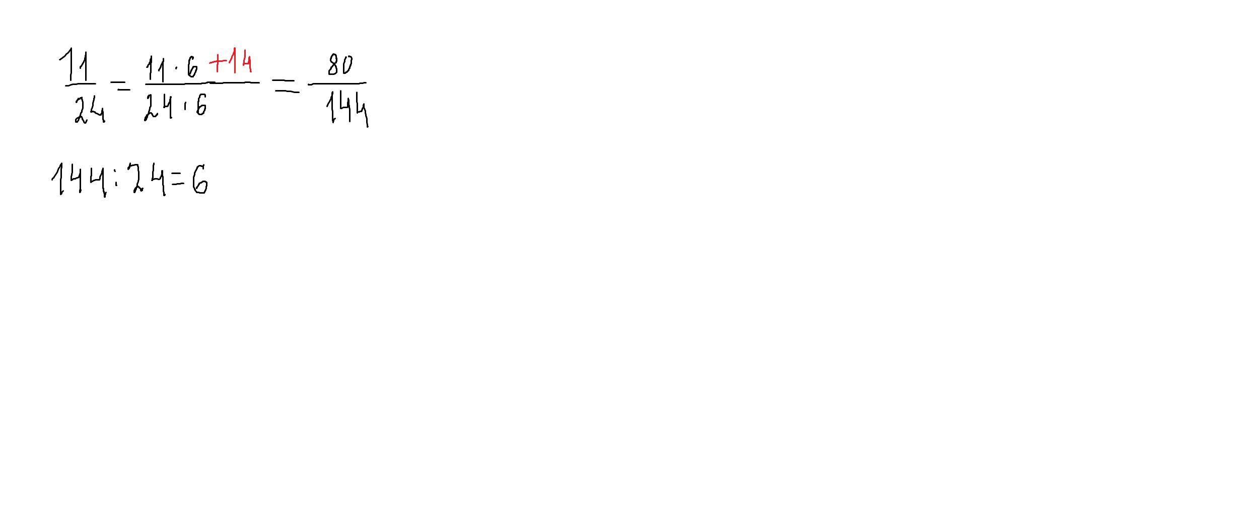 Дробь 11/24 представили в виде дроби со знаменателем 144 и добавили к числителю полученной дроби 14. Какая в итоге получилась дробь?