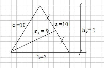 в равнобедренном треугольнике к боковой стороне длинной 10 см проведена миридиана равная 9 см. найдите площадь треугольника с точностью до 0,1 см