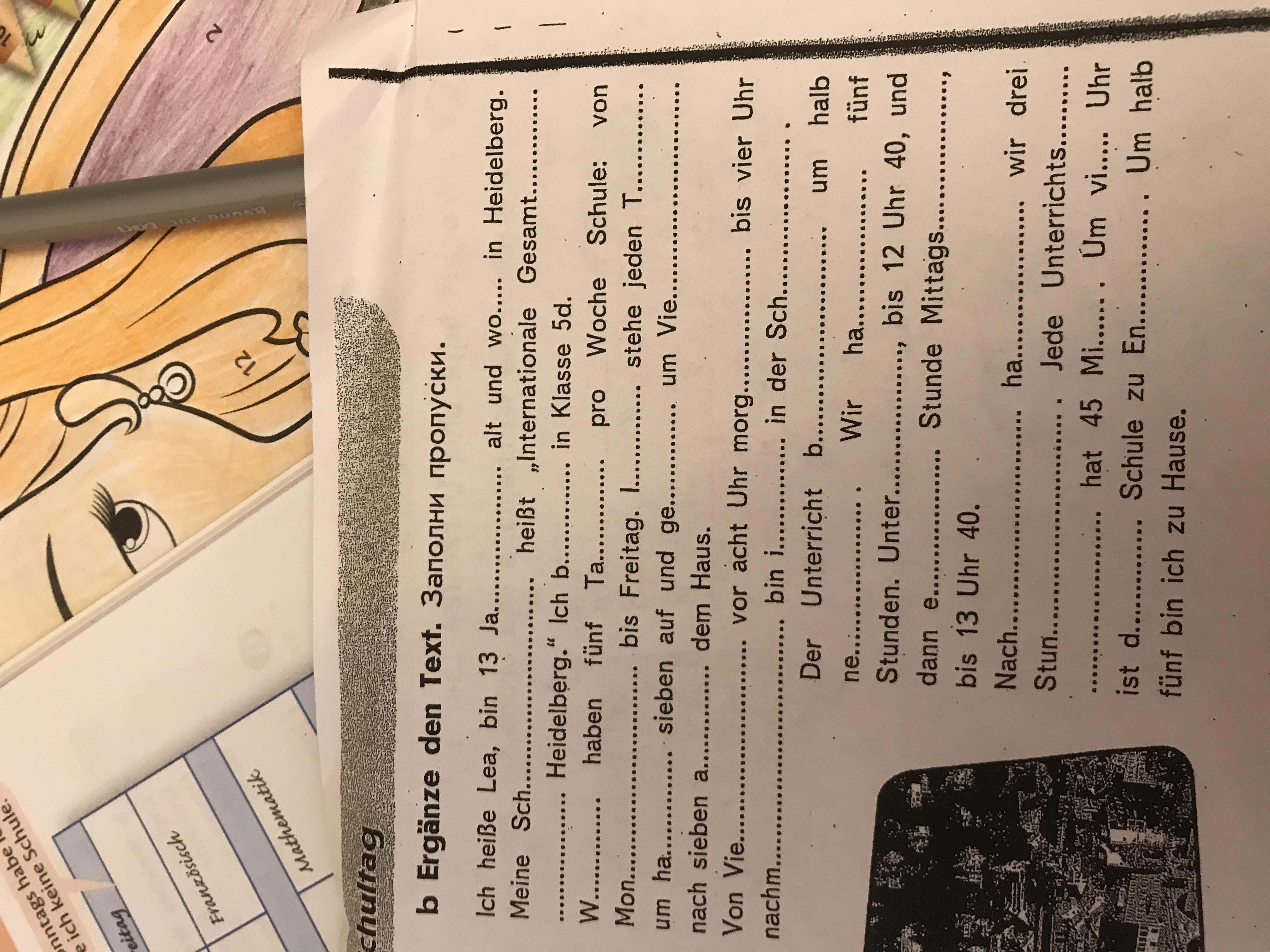 Unterricht (по идее, там не д.б. запятой - fünf Stunden Unterricht)