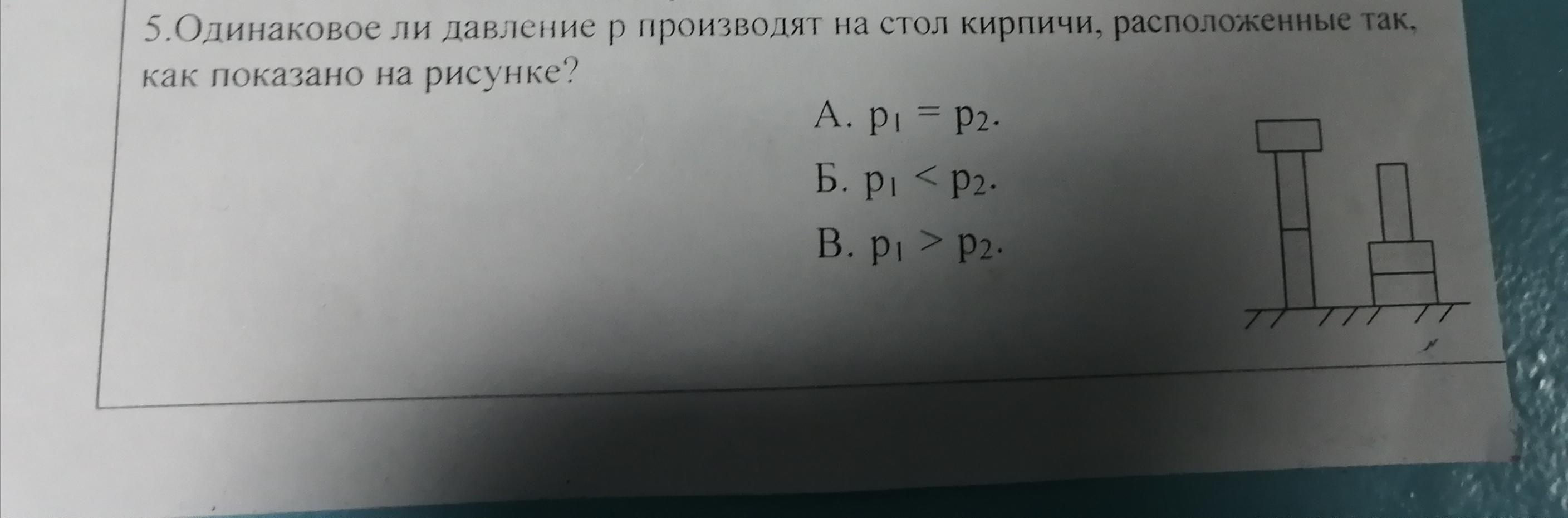 Одинаковое ли давление р производят на стол кирпичи, расположенные так. как показано на рисунке?