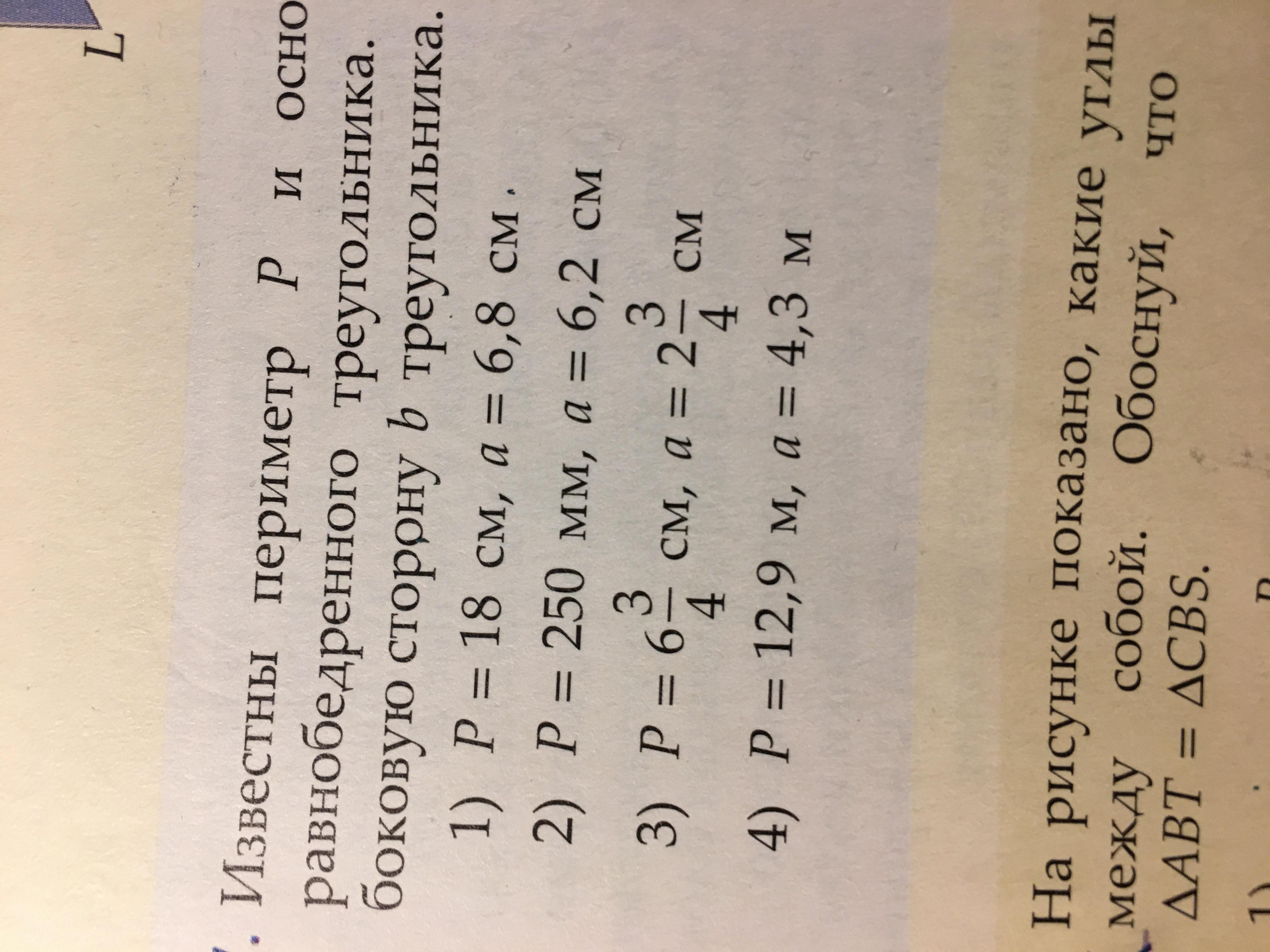 Известны периметр Р и основание а равнобедренного треугольника.Вычисли боковую строну Б треугольника. (2,4)