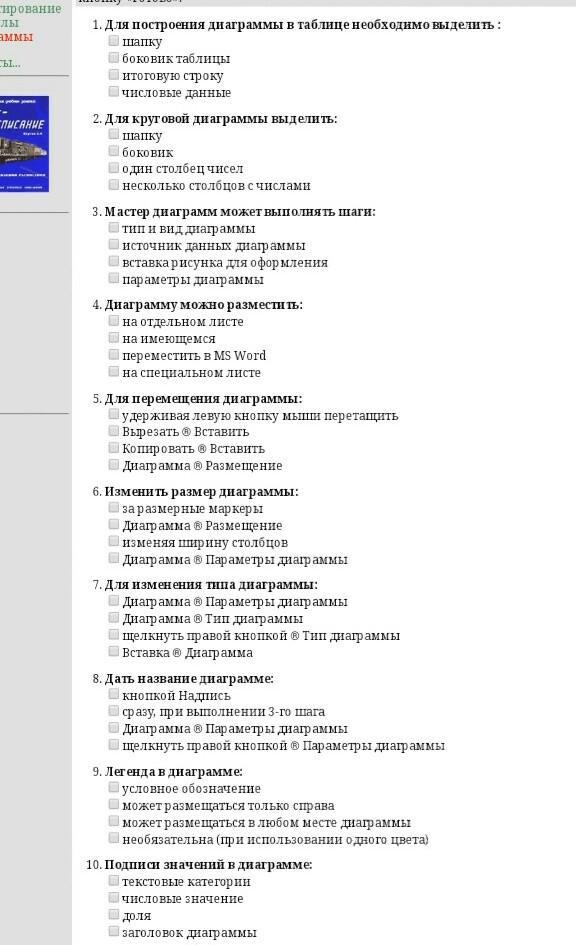 3)тип и вид диаграммы, источник данных диаграммы, параметры диаграммы