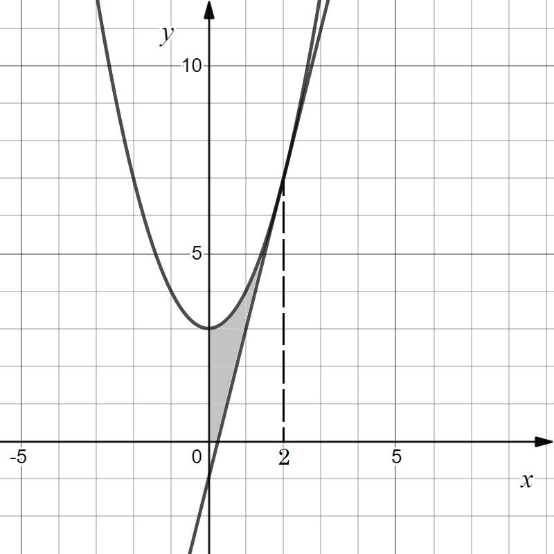 2. Найти площадь фигуры, ограниченной осями координат, параболой y=x^2+3 и касательной к ней в точке A(2;7)