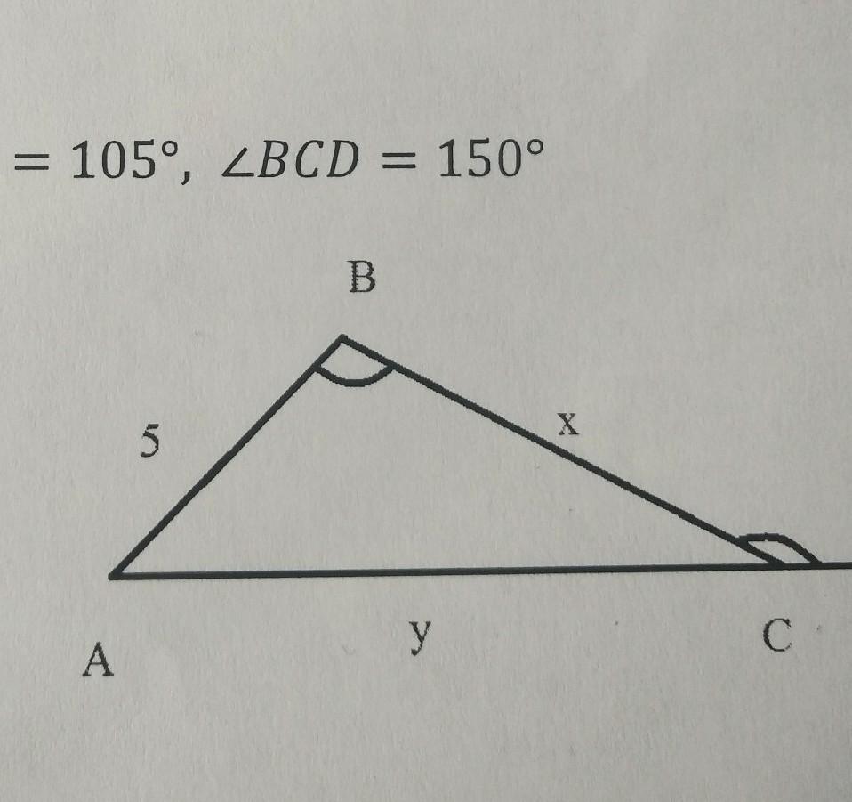 ∠BAC (по сумме углов треугольника) = 180 - 30 - 105 = 45°