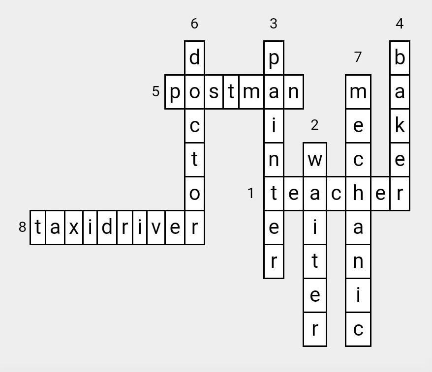 Вот кроссворд, только в 8 если захочешь, можешь поставить пробел между словами, удачи