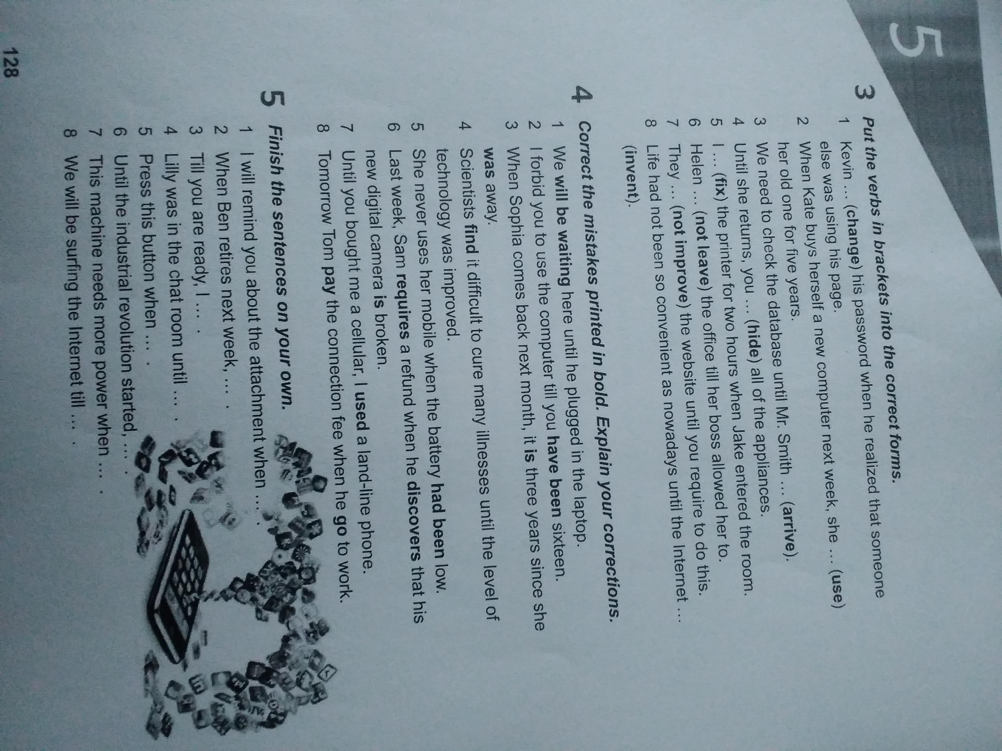 7 Они не были такими удобными, как в наши дни, до Интернета ... (выдумать). (использовать) (скрыть) всю технику (не выходить) из офиса, пока ее босс не разрешит ей. (не улучшать) веб-сайт, пока вам не потребуется сделать это. жизнь