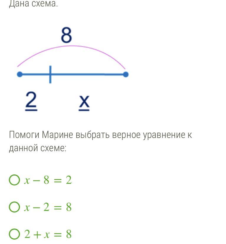 По схеме можно определить, что: к 2 прибавив x получится 8 ⇒
