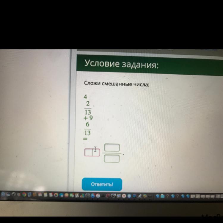 Ответ: 4 2/13 + 9 6/13 = 13 8/16