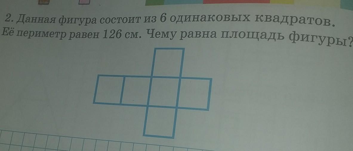 Данная фигура состоии из 6 одинаковых квадратов.Её периметр равен 126 см. Чему равна площадь фигуры?