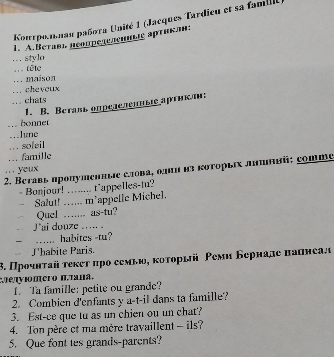 1) a) un, une, une, des,des