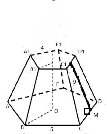 В правильной усеченной пятиугольной пирамиде апофема равна 9 дм, ребро верхнего основания равно 4 дм, ребро нижнего основания равно 5 дм. Найдите площадь боковой поверхности усеченной пирамиды.
