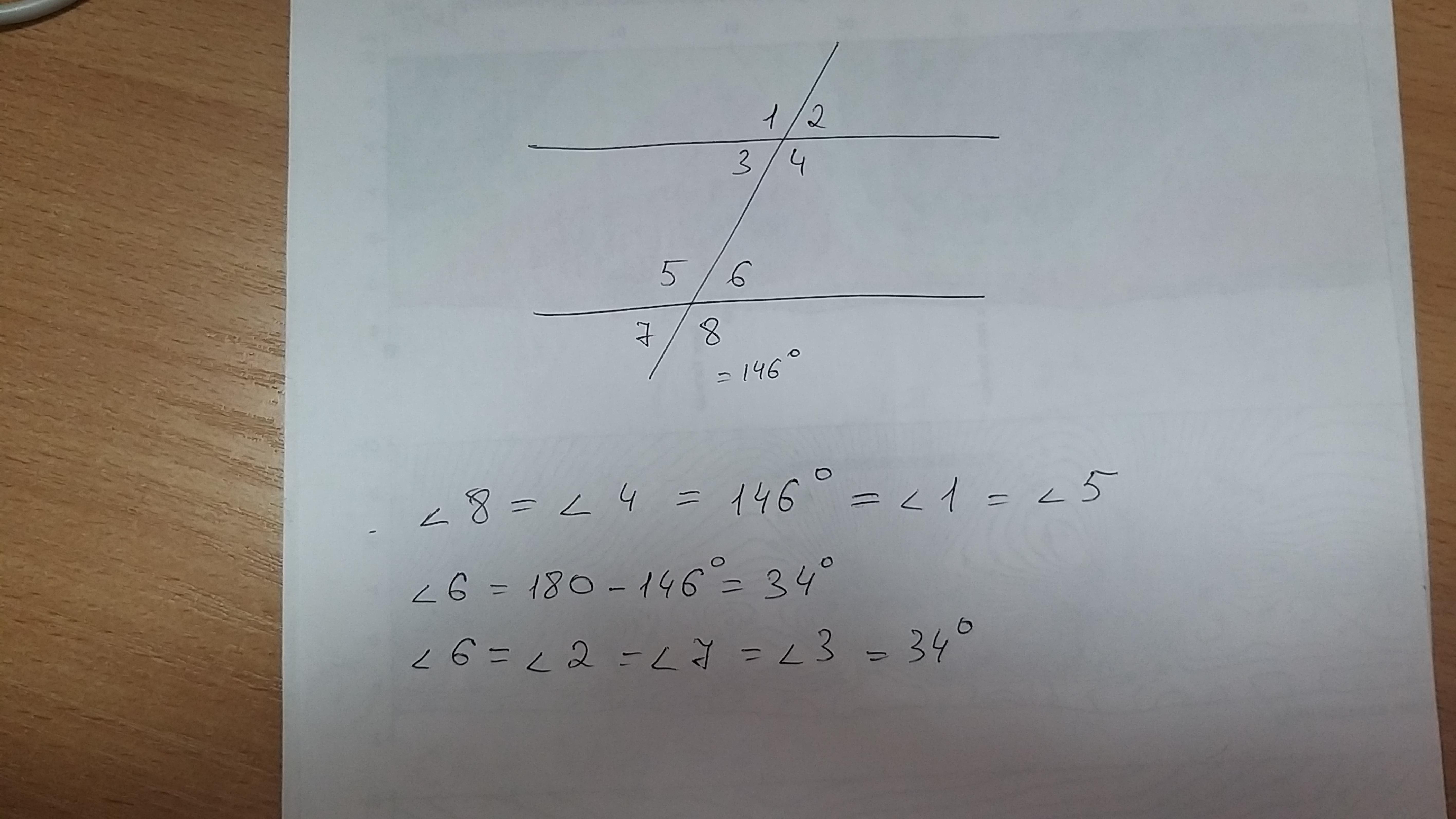 ∢5=∢8(вертикальные углы равны);∢5=146°.