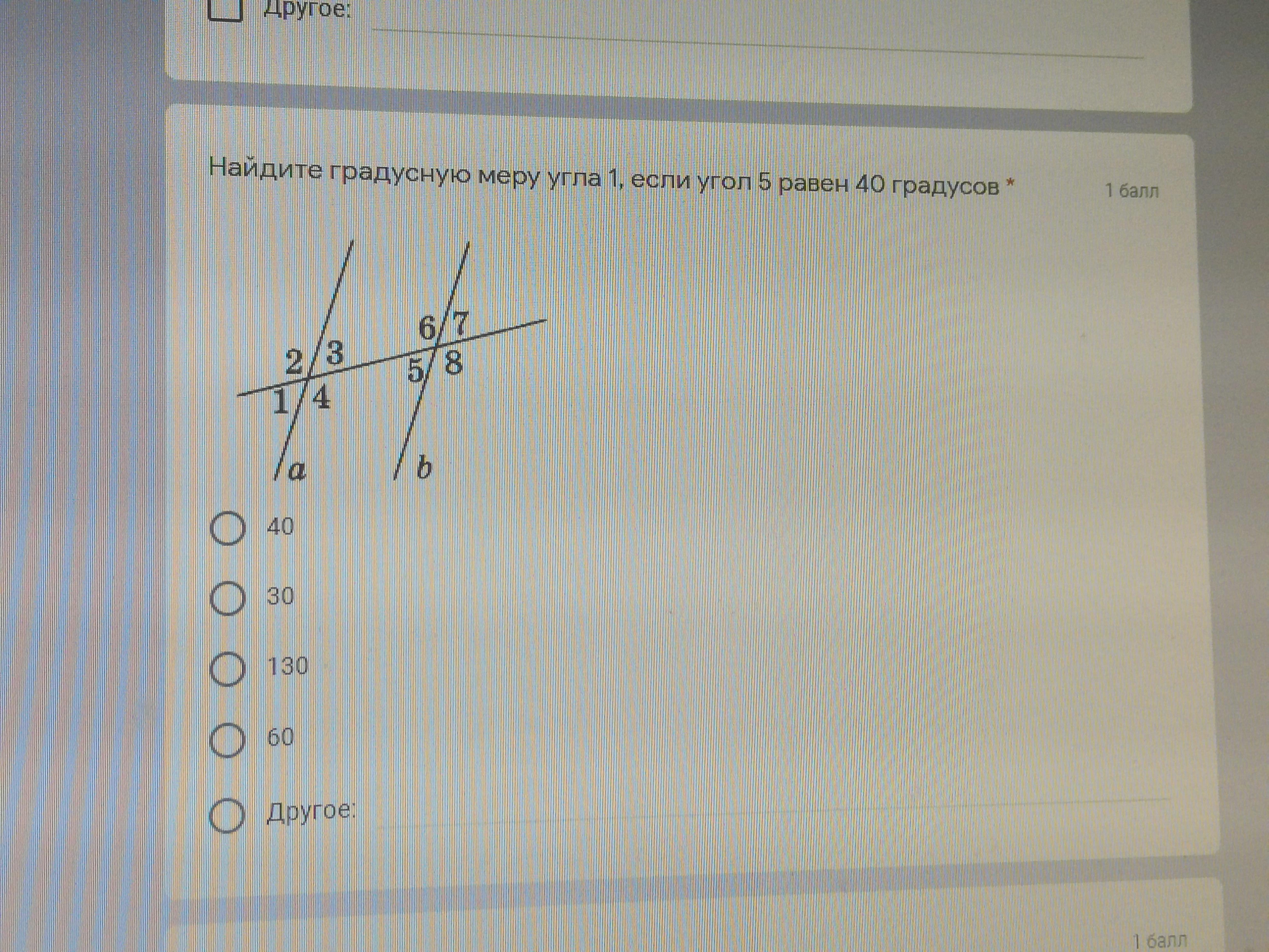 можно предположить, что а и в - параллельны, значит, угол 1 и 5 - соответственные