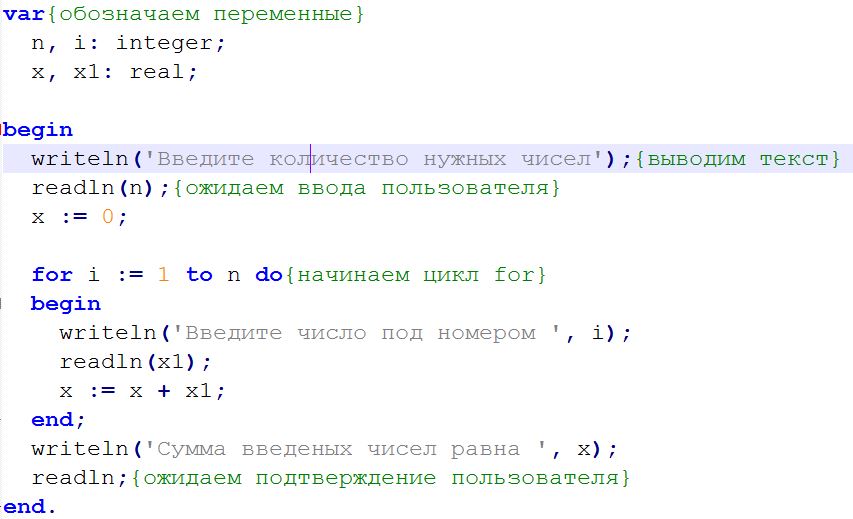 Помогите с Pascal! Задача- составьте программу нахождения суммы n произвольных чисел(число n ввести с клавиатуры).