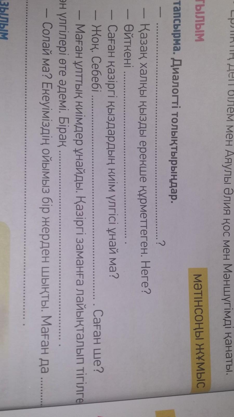 -Солай ма? Екеуіміздің ойымыз бір жерден шықты. Маған да қазіргі заманның киім үлгілері ұнамайды, әсіресе қыздардікі. Мен қыздарымызды бұрынғыдай әдемі ұлттық киімдерді киюін қалар едім.