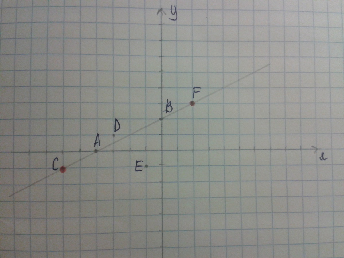 какие точки лежат на прямой,проходящей через точки А(-4;0) и В(0;2)