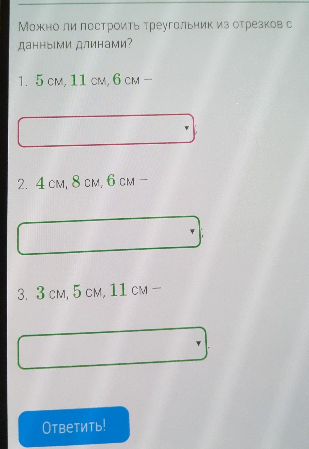 1 нет 2 да 3 нет потому что 1 и 3 это уже не треуголбники