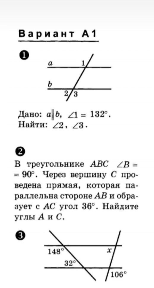 Задание А1) угол 1=углу 2=132°; угол 3 =48°