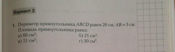По этим данным, площадь (S) прямоугольника ABCD равна 3*7=21 см2