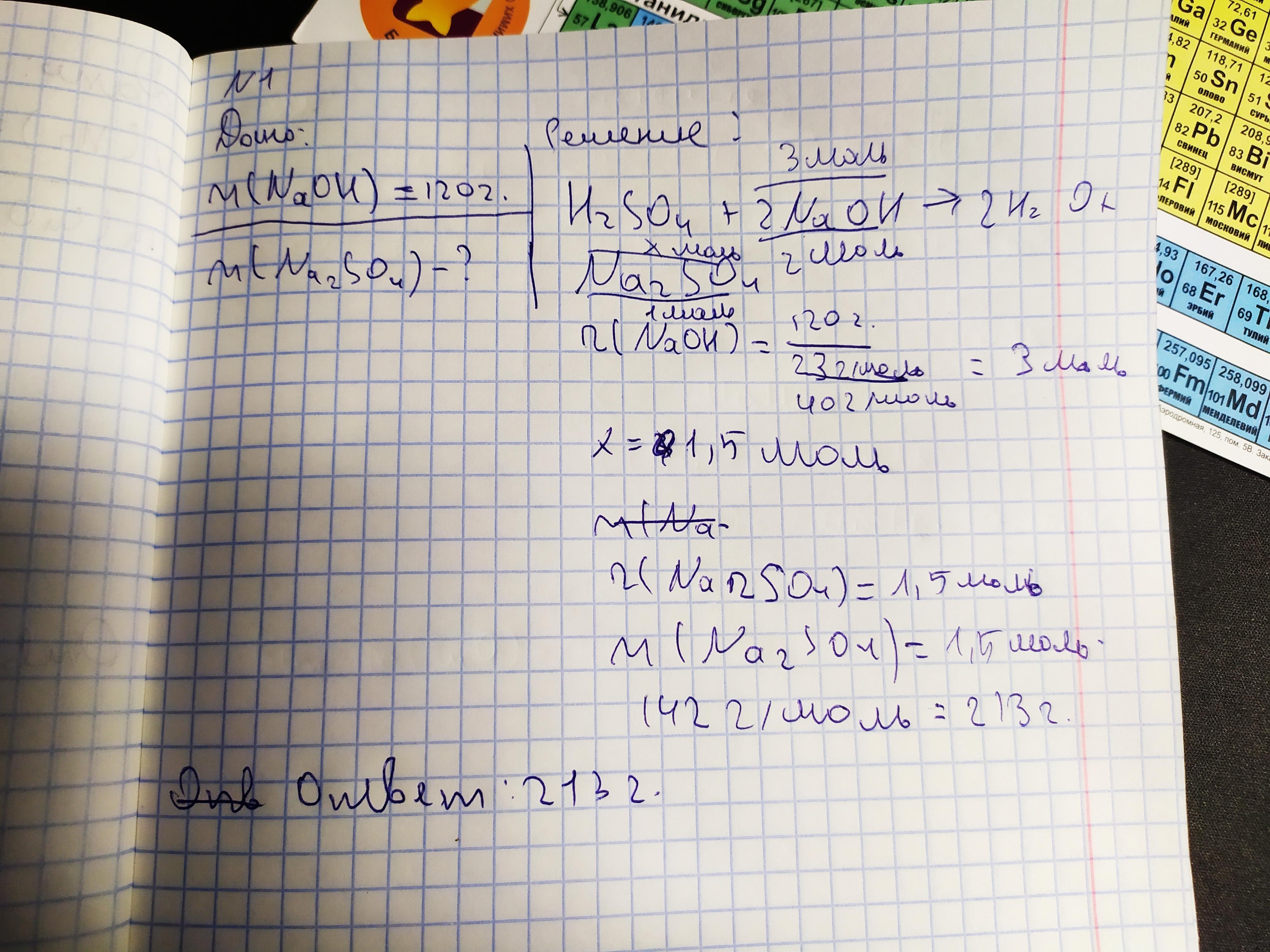 1)В реакцию серной кислотой вступила 120 г гидроксида натрия.Рассчитайте массу образовавшейся соли?