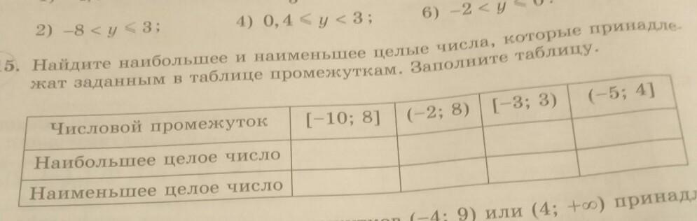 Первый промежуток: Наибольшее 8; Наименьшее -10