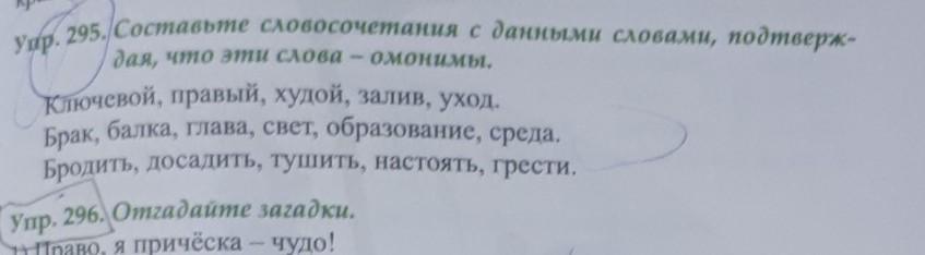 Составьте словосочетания с данными словами, подтверждая, что эти слова омонимы.295 это 4