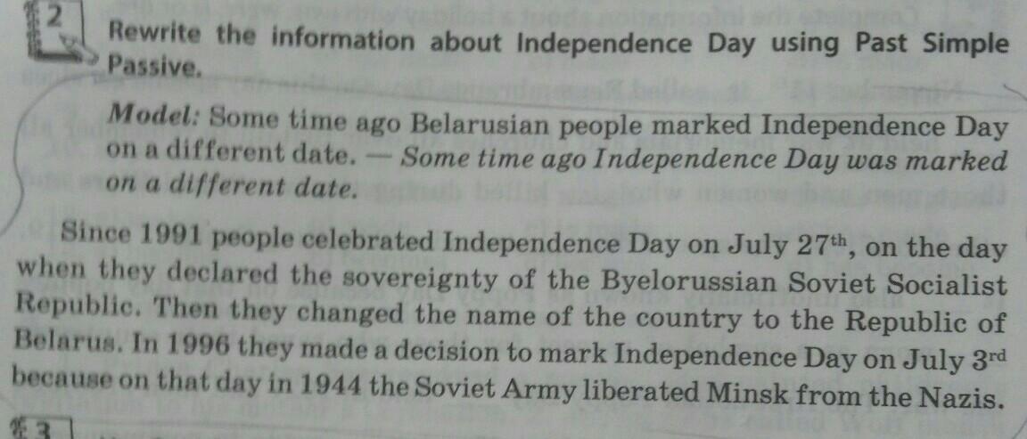 Since 1991 Independence Day was celebrated on July 27th, on the day when the sovereignty of the Byelorussian Soviet Socialist Rebublic was declared. Then the name of the country was changed to the Rebublic of Belarus. In 1996 a decision to mark Independence Day on July 3rd was made because on that day in 1944 Minsk was liberated from the Nazis.