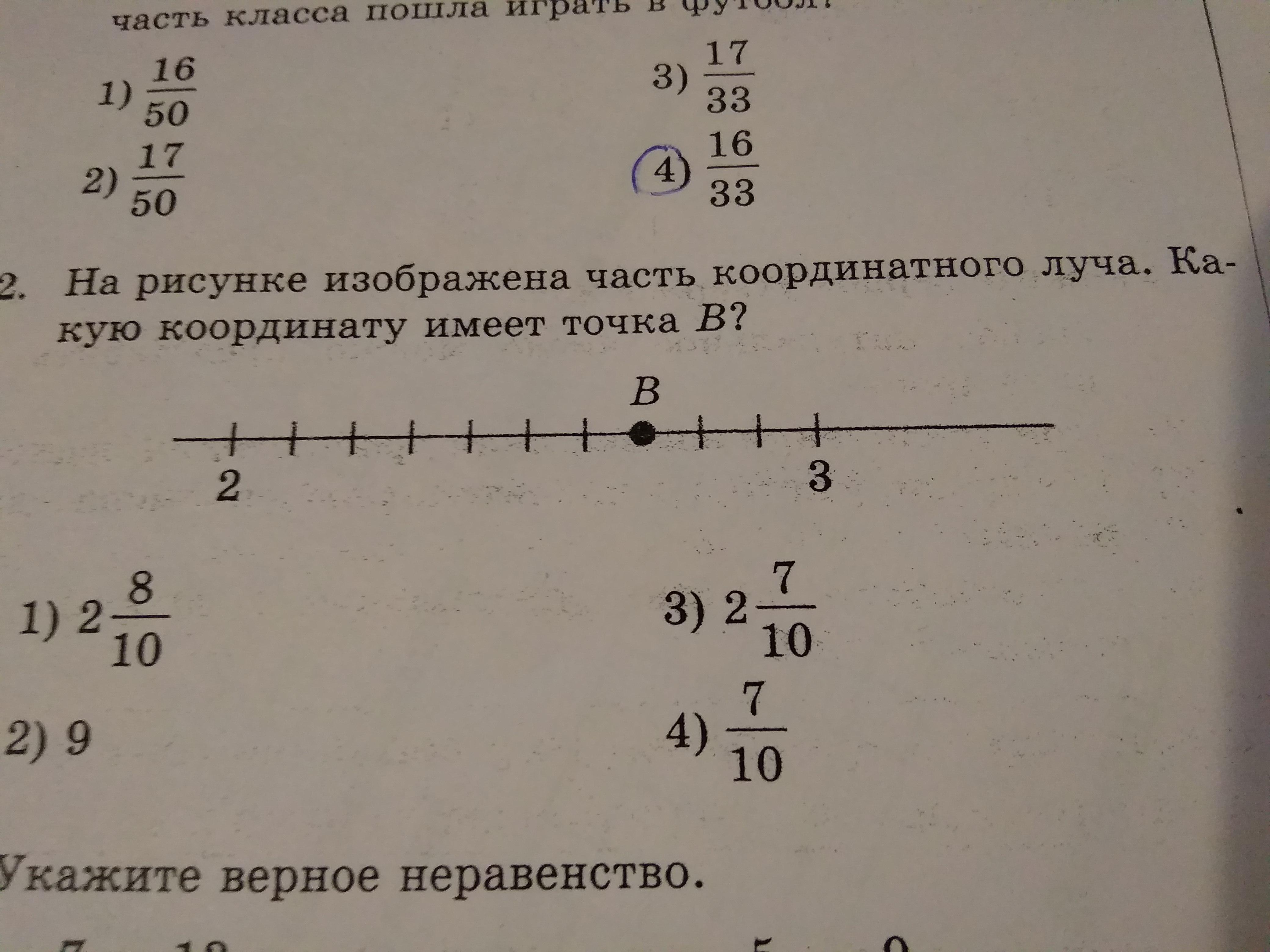 От 2-ух до 3 - х есть мм от1 до 10 и точка соответствует мм 7 поэтому вышла ответ 2 7/10