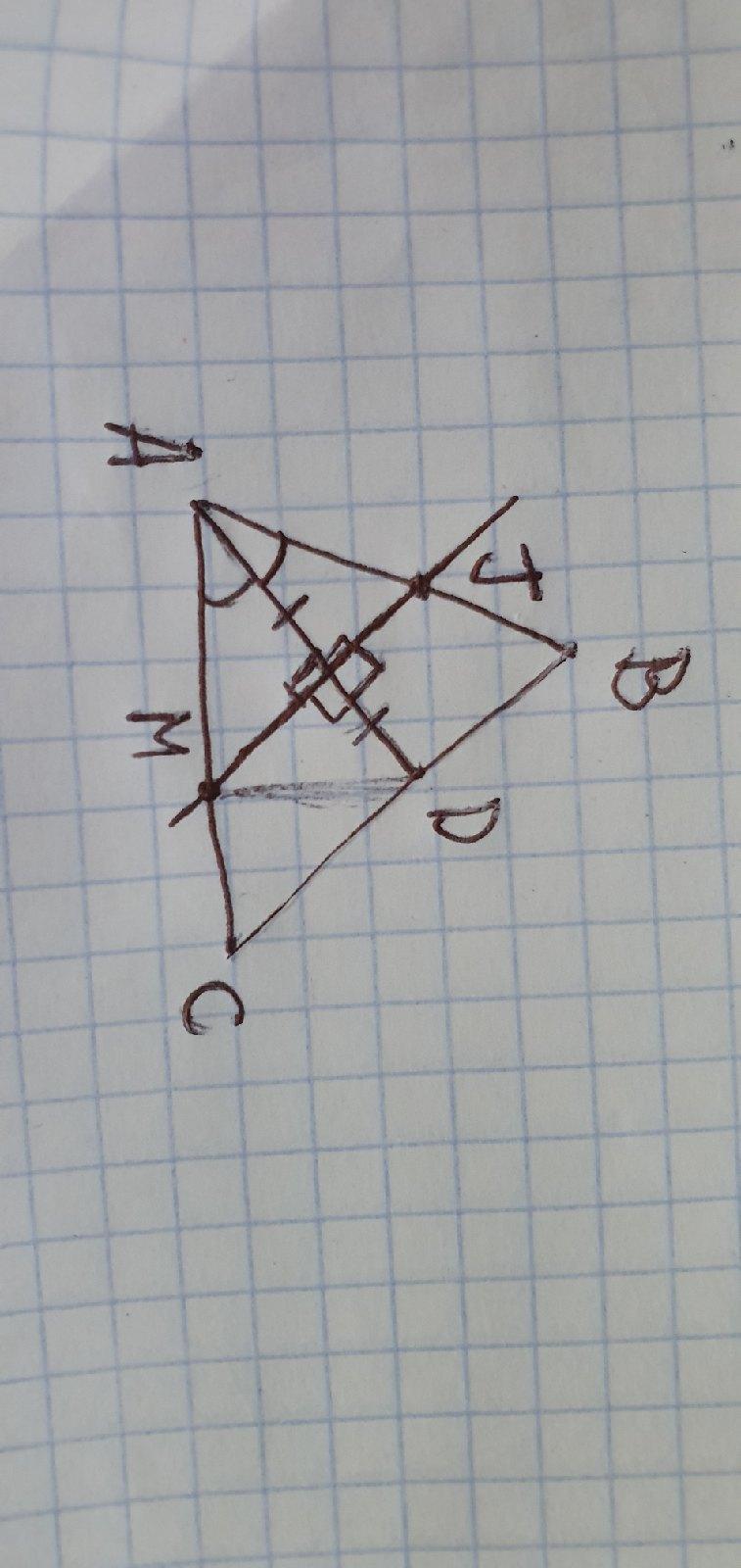 Прямая, проходящая через середину биссектрисы AD треугольника ABC и перпендикулярная к AD, пересекает сторону AC в точке M. Докажите что MD параллельна AB