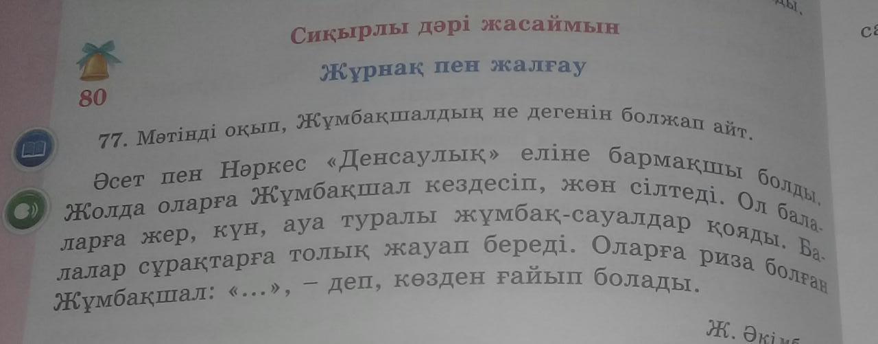 оларга риза болган жумбакшал<<жарайсындар>>-деп ,козден гайып болды.