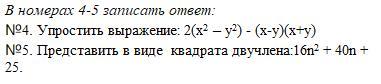 №4. 2(x²-y²) - (x-y)(x+y) = 2x²-2y² - (x²-y²) = 2x²-2y²-x²+y² = x²-y²