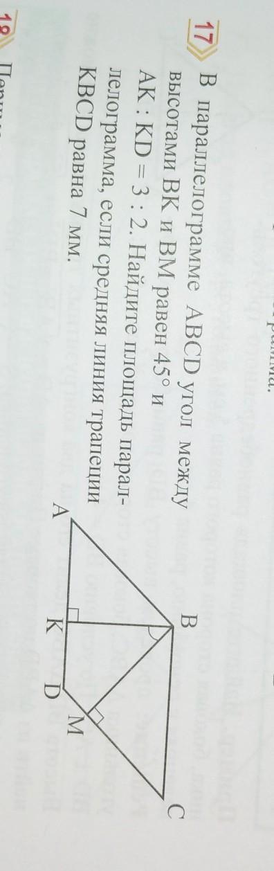 по условию ВК⊥AD но AD║BC ⇒ВК⊥ВС т.е. ∠КВС=90° ∠МВС=∠КВС-∠КВМ ∠МВС=90°-45°=45°