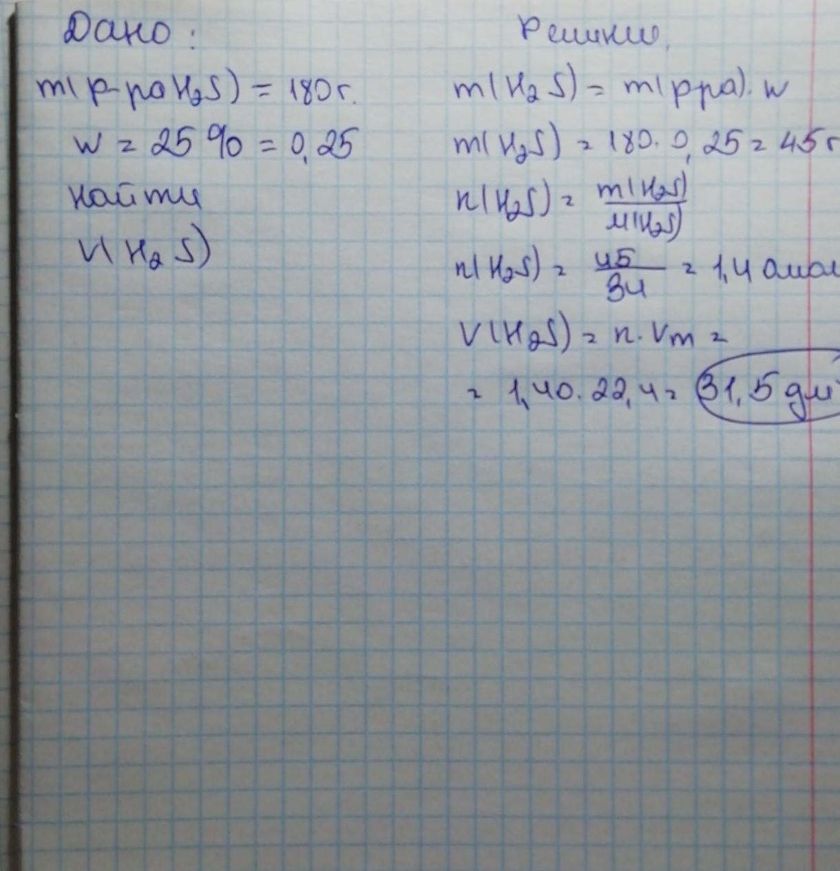 сероводород какого обьема необходим для приготовления сероводородной кислоты массой 180г с массовой долей H2S 25%