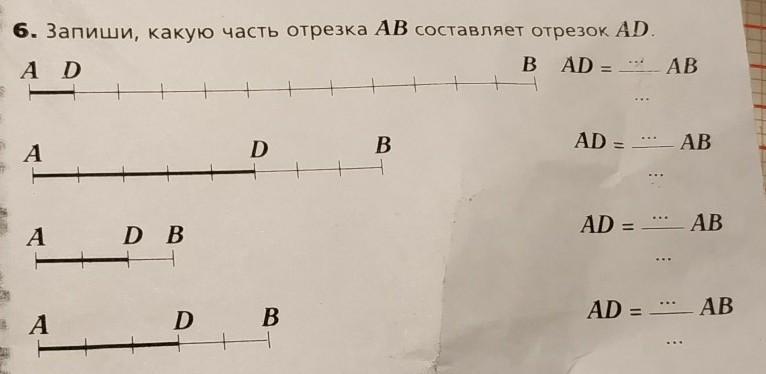 Запиши какую часть отрезка AB составляет отрезок AD