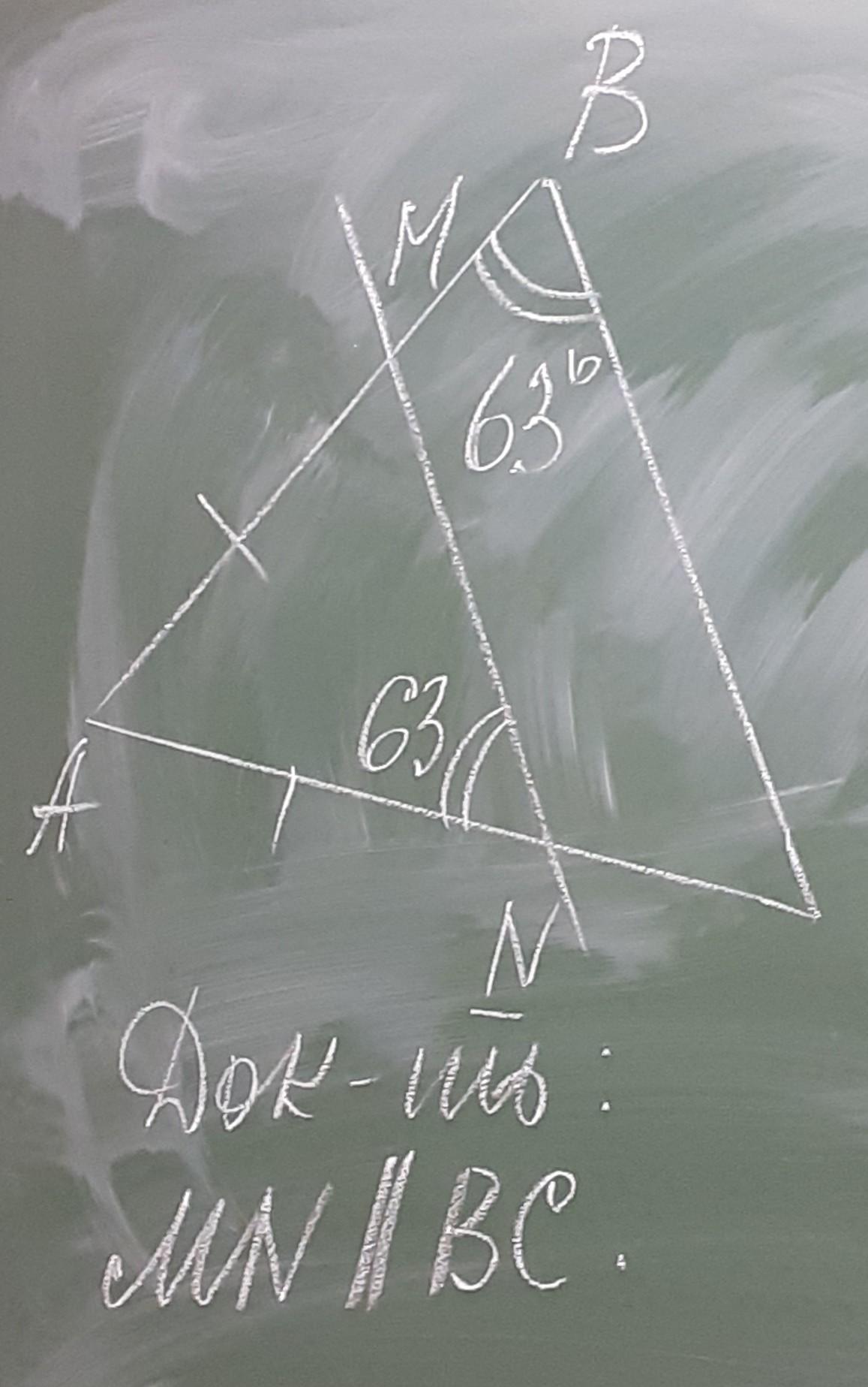 ∠AMN=∠ABC = 63°, как соответственные углы при секущей АВ, следовательно MN//BC